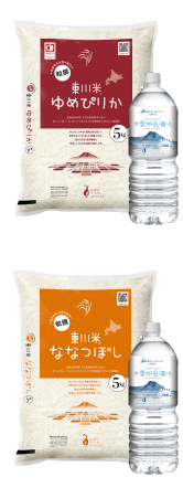 お届け内容:東川米「ななつぼし」5kg × 1袋 / 大雪旭岳源水 2L×3本