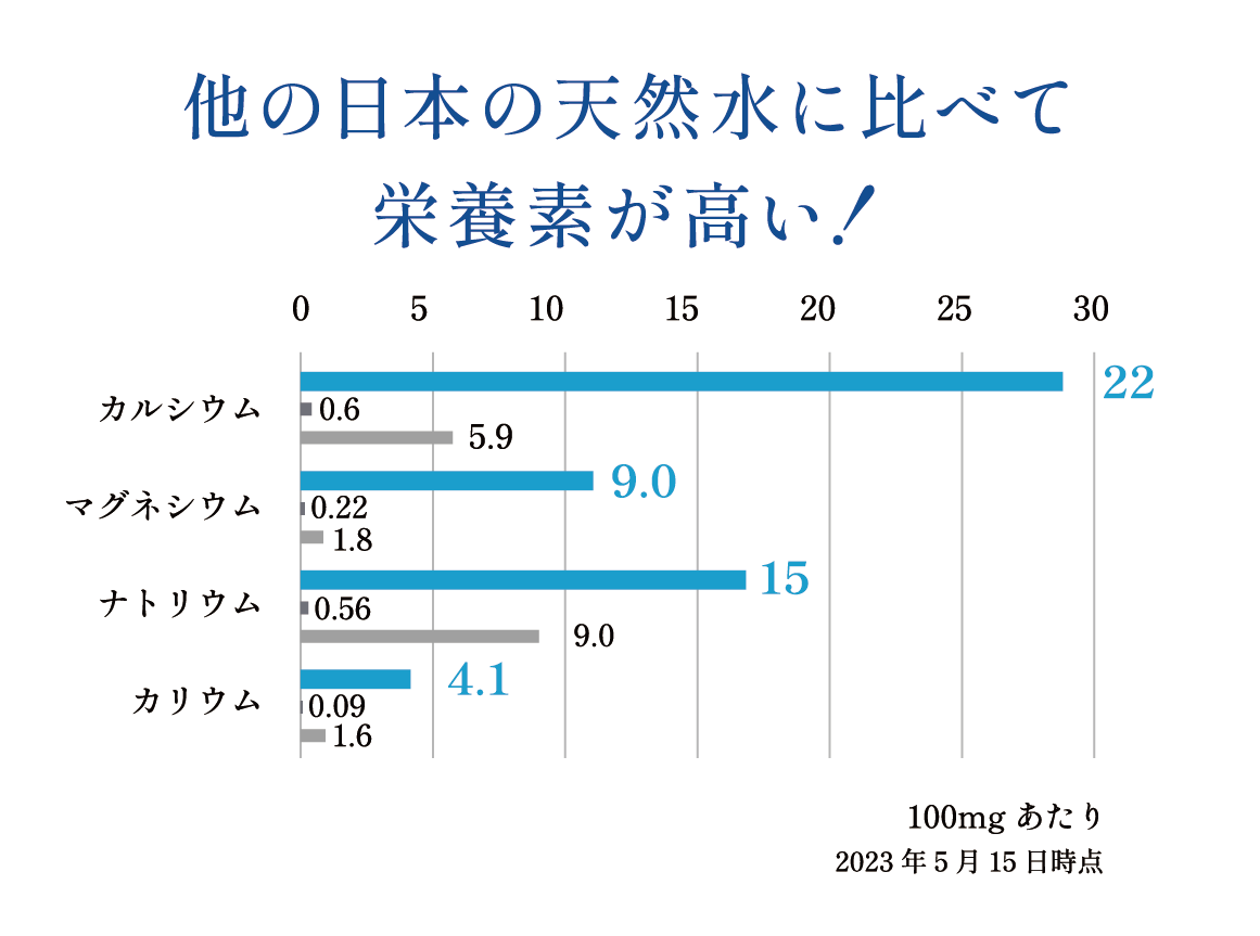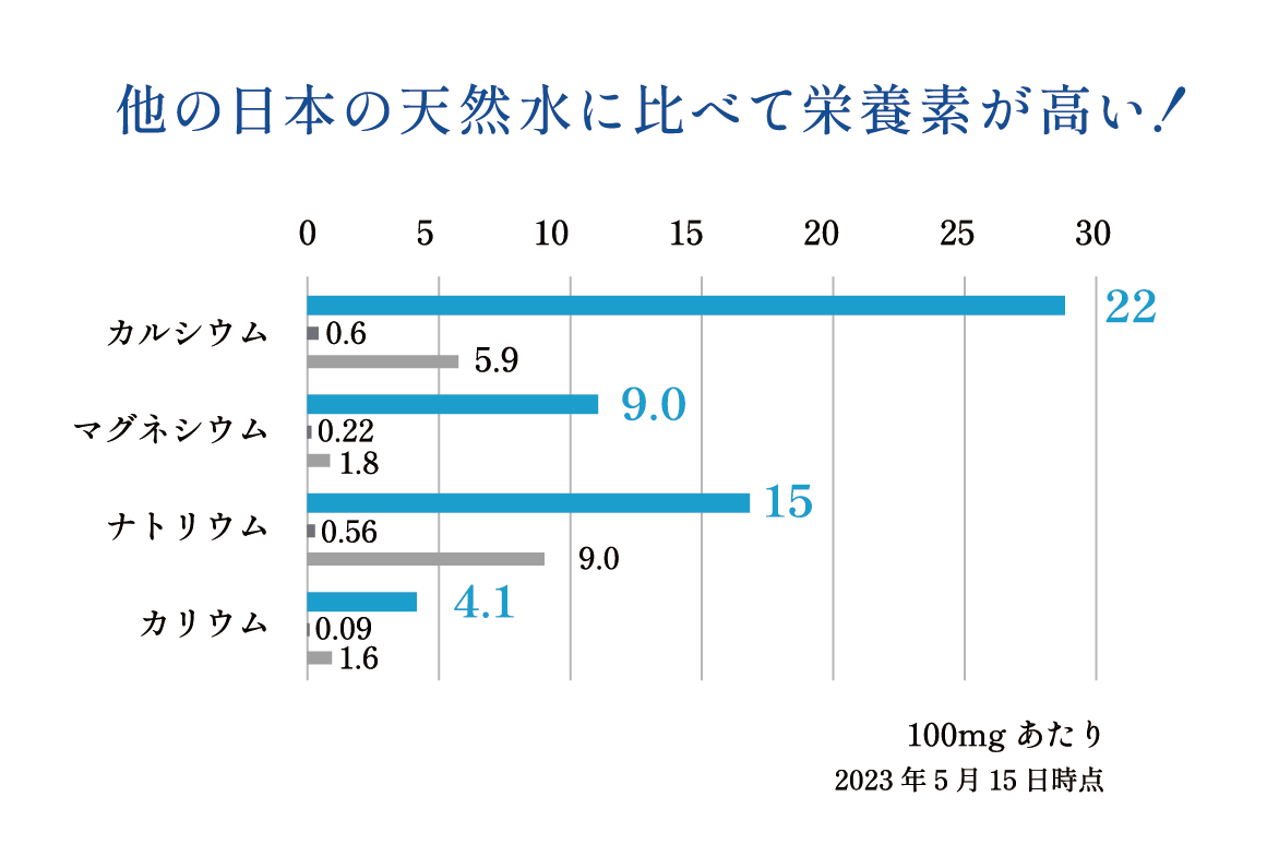 カルシウムとマグネシウム濃度が2対1になるのが望ましいとされていますが、この源水はまさにそれに近い水でした。